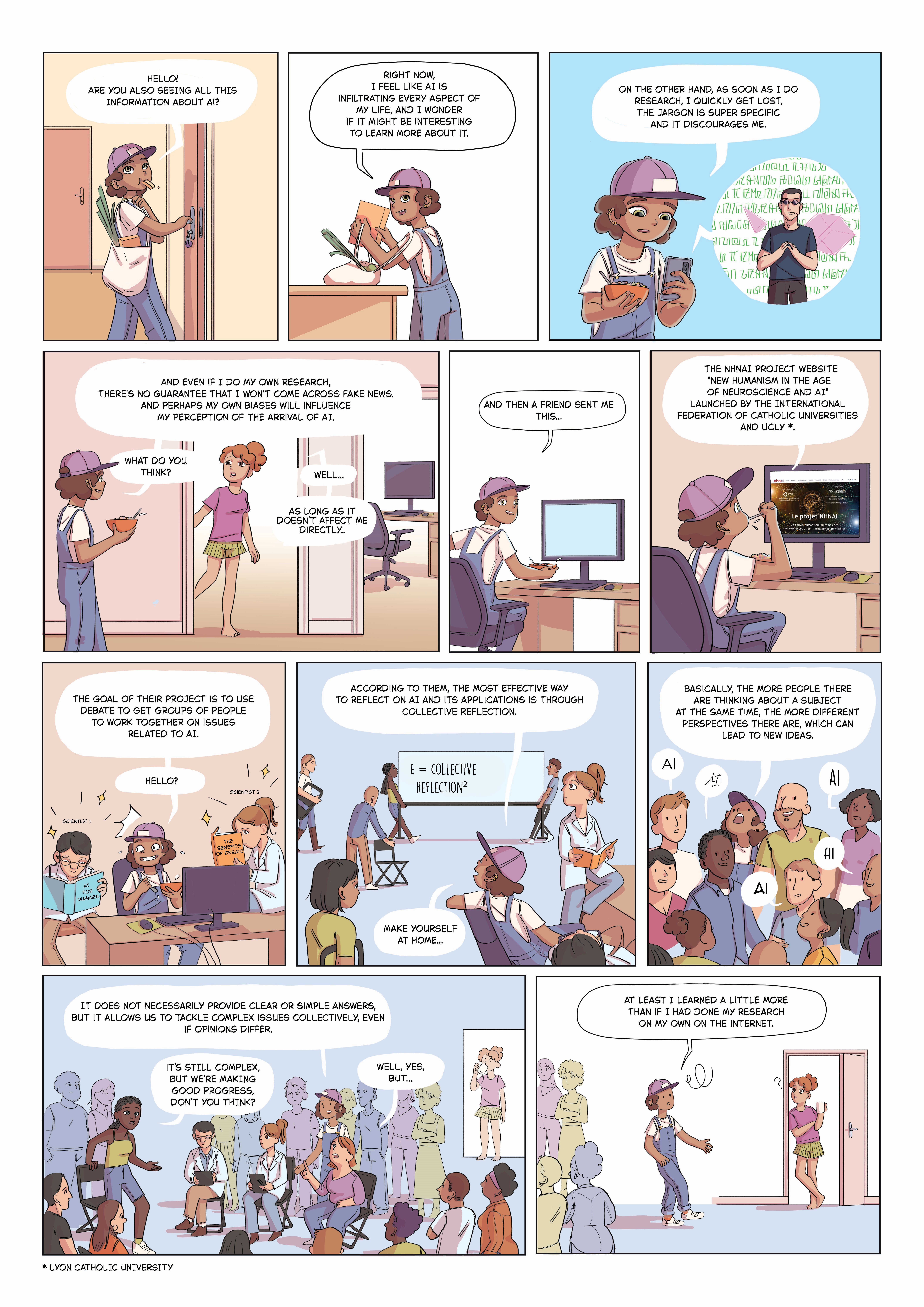 This comic book has been produced in collaboration with L’épicerie Séquentielle, an association of comic book authors based in Lyon, France. It is intended for a broad audience and presents NHNAI project’s approach, inviting individuals and groups to engage in the ethical reflection for a more responsible development and use of AI.