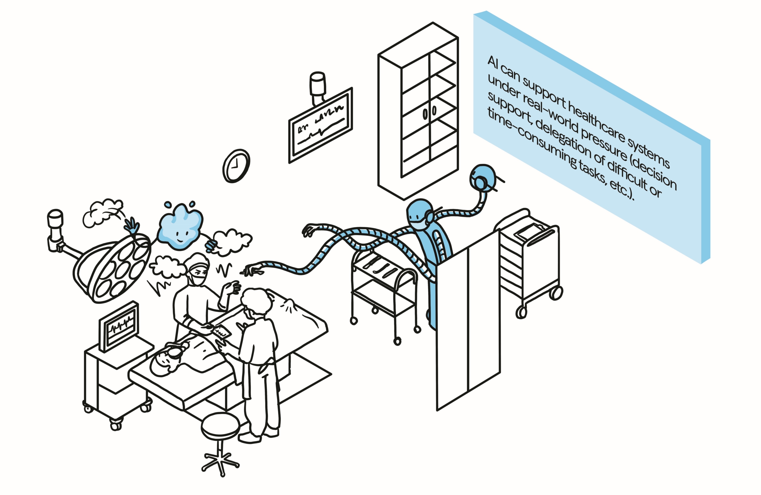 It is however also largely consensual in discussions that AI and health technology should contribute to a more humanized healthcare system. In general, machines should not replace humans. In particular, tasks pertaining to medical decision-making, communication and care giving should remain human. Although it is true that health professionals and caregivers often lack time and are exhausted, and that healthcare systems are under high pressure, AI technologies may not constitute the right or primary answer to these major issues.